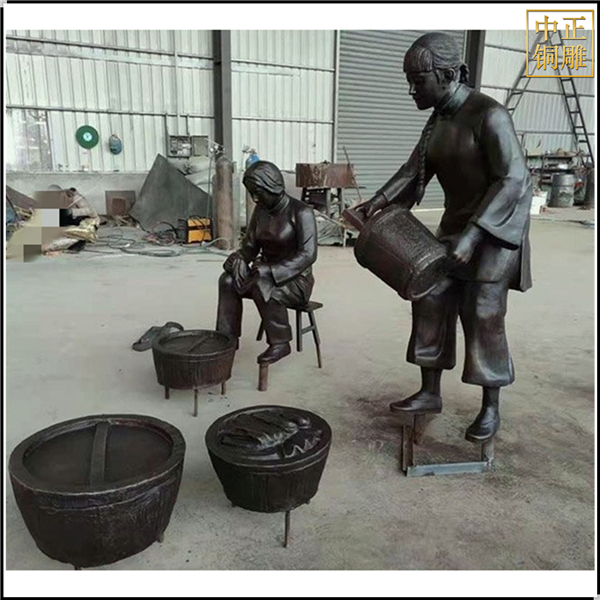 中正銅雕-打水洗衣服人物雕塑、打水洗衣服人物雕塑價格、打水洗衣服人物雕塑廠家,我公司集科研、開發設計、普通鑄造、一次性整體澆鑄、精密鑄造于一體。本公司技術力量雄厚,設備,不但重視中國青銅器原有的藝術風格,還繼承了文物原有的藝術品味,在繼承和發揚古老文化的同時,更深一步為新老客戶定身量制各種銅制、鐵制工藝品等產品,曾多次受到寺廟長老和美術學院教授的好評。
